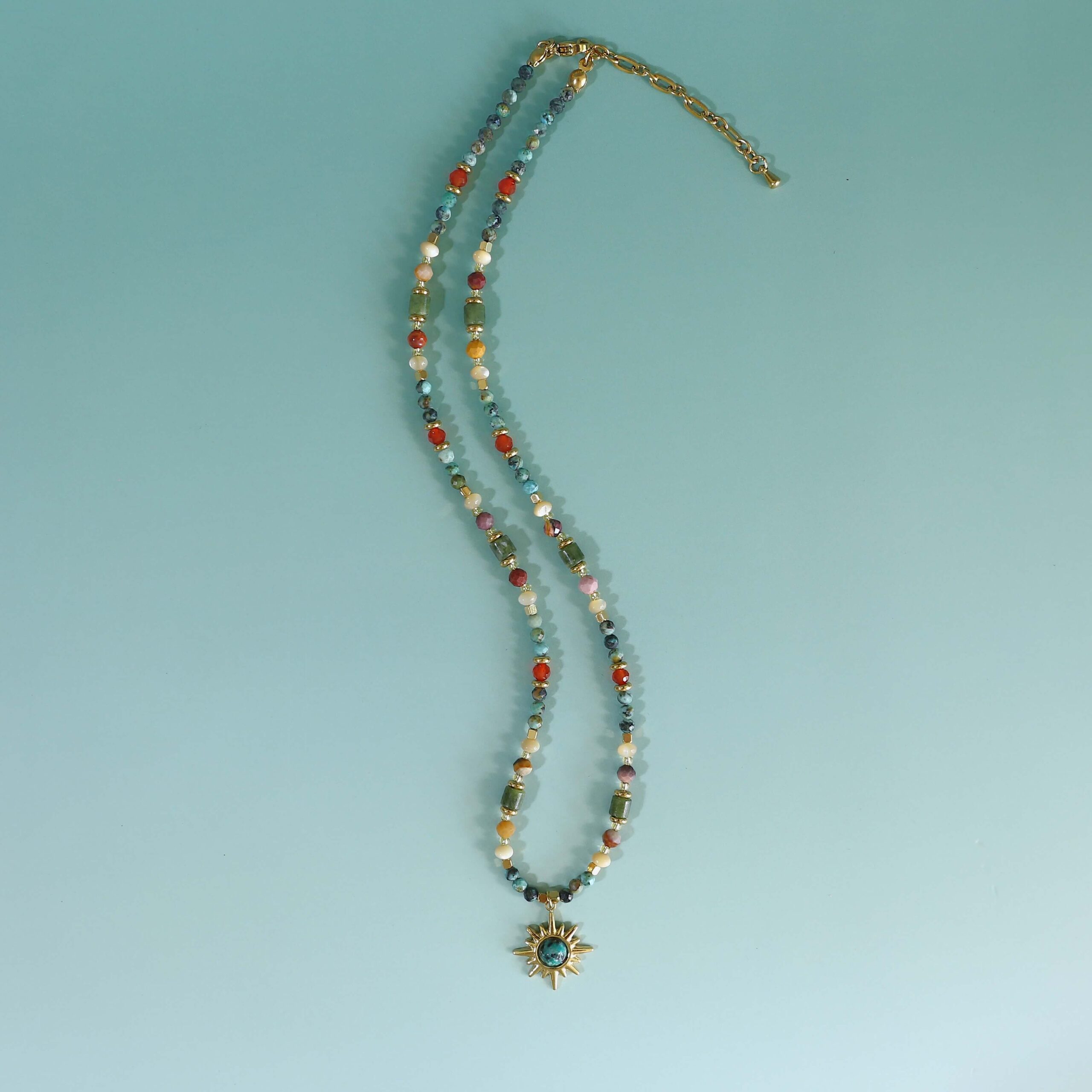 African turquoise, red agate, and golden starburst unite in a poetic rhythm—echoing daydreams, distant lands, and the warmth of slow afternoons.